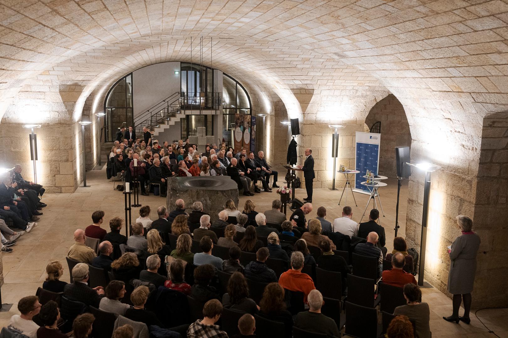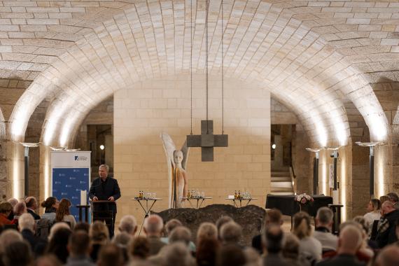 Am Abend des 28. Februar fanden sich mehr als 150 Gäste in der Unterkirche der Frauenkirche Dresden ein, um die bewegenden Berichte von Ruslan Odaiskyi, Gennadiy Kharchenko und Huan Leyva-García zu hören. Alle drei Männer verteidigten die Ukraine seit Beginn der russischen Vollinvasion am 24. Februar 2022 und befanden sich bis September 2025 in russischer Kriegsgefangenschaft.