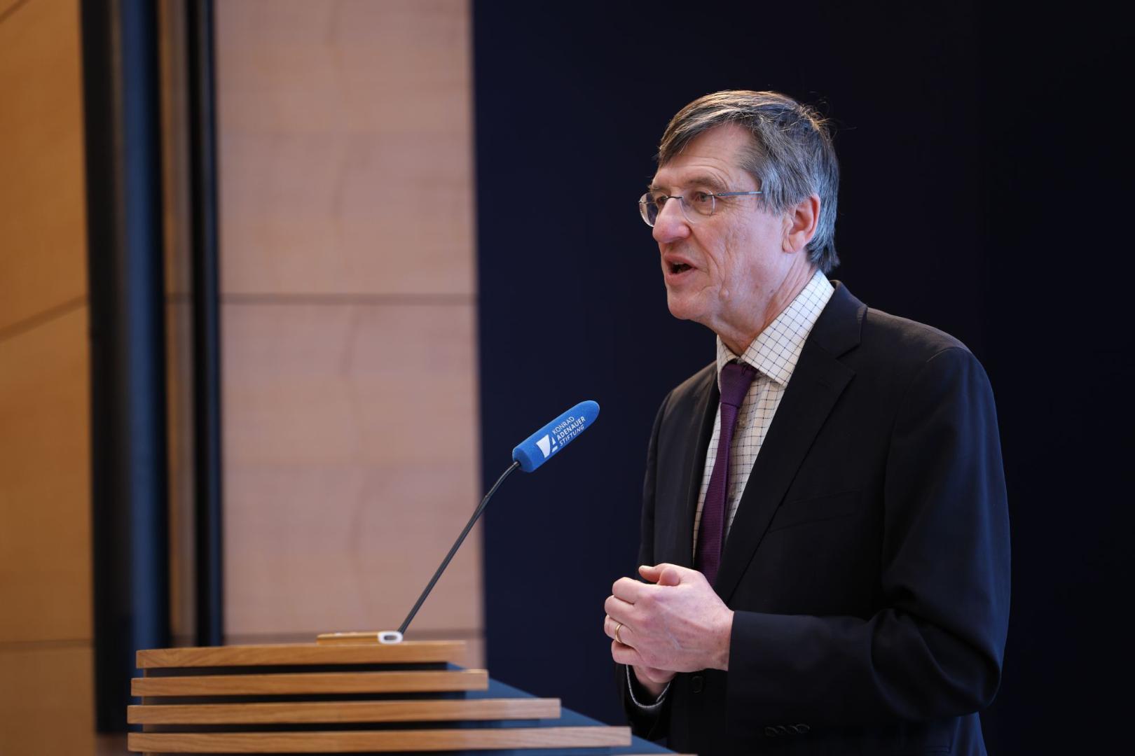 Di Fabio skizzierte in seiner Keynote das Modell der liberalen Demokratie anhand der Rechtsprechung des Bundesverfassungsgerichts und ging dabei auf neue geopolitische Bedrohungslagen – in erster Linie durch den russischen Angriff auf die Ukraine – in einer sich abzeichnenden multipolaren Machtkonkurrenz ein. Dabei stellte er die Frage, ob das wirtschaftliche, technologische und ideelle Gewicht des Westens ausreiche, um sich gegen diese äußeren Bedrohungen behaupten zu können. Mit Blick auf innere Bedrohungslagen der Demokratie beleuchtete Di Fabio die Fragmentierung öffentlicher Meinungsräume, den Verlust institutioneller und lebensweltlicher Bindungskräfte und die Spaltung der Gesellschaft. Für die Erneuerung der pluralen und liberalen Demokratie und ihre künftige Selbstbehauptung sei eine neue, lebendige Zivilgesellschaft zentral. „Die Zukunft der liberalen Demokratie im 21. Jahrhundert wird gut sein, wenn wir das wollen. Das 21. Jahrhundert ist das Jahrhundert, in dem sich das Schicksal der Freiheit entscheidet.“