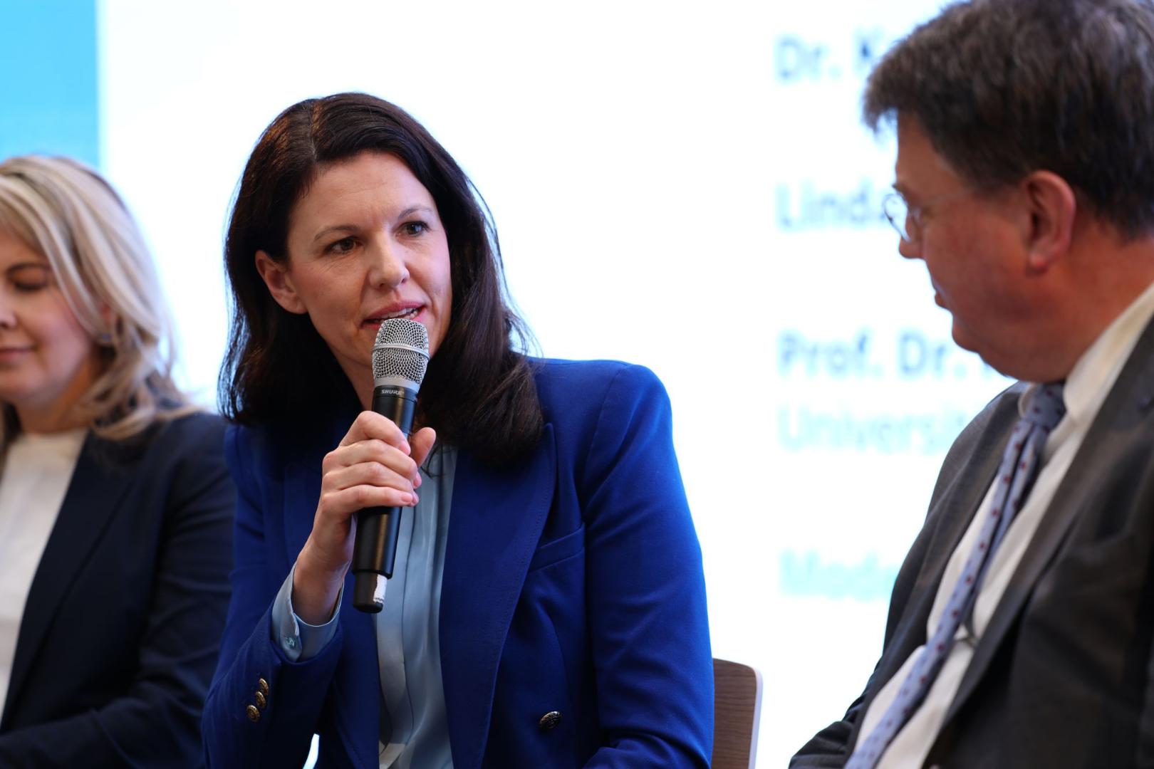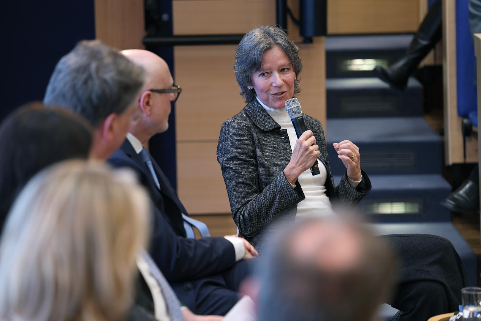 Mit Blick auf die aktuelle weltwirtschaftliche Entwicklung sah die Ökonomin und Publizistin Karen Horn die zunehmende Deglobalisierung einerseits kritisch, andererseits müsse sich die europäische Wirtschaft aber auch unabhängiger machen. Eine Herausforderung sei zudem die mitunter zu stark gelenkte Wirtschaft.