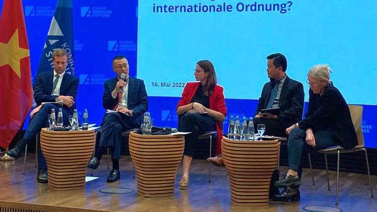 Vietnams Enthaltung bei der Stimmabgabe zur Missbilligung der Aggression der Russischen Föderation gegen die Ukraine bei der UN- Vollversammlung am 2. März 2022 beschrieb Nicolas Zippelius als „sehr bedenklich und auch enttäuschend“. Dr. Nguyen Hung Son (Vizepräsident der DAV) begründete dies mit historisch bedingten Abhängigkeiten (insbesondere im Rüstungsbereich) von Russland und einer gewissen Distanz zum Geschehen. Er sprach von „schwierigen Zeiten für beide Länder“. Zudem ist er sich sicher, dass die Stimmabgabe Vietnams nicht die komplexe Meinung des Landes zum Ukraine-Krieg und einer regelbasierten internationalen Ordnung widerspiegelt. Dr. Jan Freigang (Referatsleiter Südostasien, Auswärtiges Amt) reagierte darauf, indem er klarstellte, dass bei der Position zum Ukraine-Krieg nicht die geographische Lage entscheidend sei, sondern „das gemeinsame Handeln und Verständnis von Situationen“.