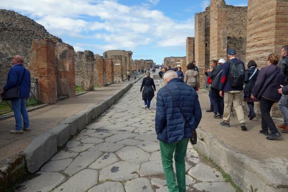 Am nächsten Tag tauchten die Reiseteilnehmer mit einem Besuch Pompejis in die Welt der Antike ein, um anschließend zur Insel Procida zu fahren, wo die Zeit stehen geblieben zu sein schien und die Touristenströme noch nicht hingefunden haben. Paestum mit seinem Museum und archäologischen Park stand im Mittelpunkt des Freitags. Abgerundet wurde der Einblick in die römische Zeit am letzten Tag mit der Besichtigung von Herculaneum. Nach einem letzten Blick auf Neapel von der Volmero Höhe hieß es schließlich Abschied von Italien zu nehmen.