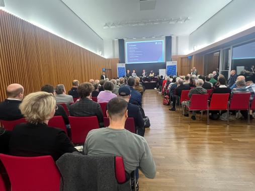 „Wir würden uns alle wünschen, dass es schneller geht, aber der Anfang ist gemacht“, kommentierte Oberstleutnant i.G. Marcel Bohnert, stv. Vorsitzender des Deutschen Bundeswehr Verbandes, in der anschließenden Podiumsdiskussion. Die Aufgabe der Bundeswehr sei es, die Partner an der Ostflanke zu unterstützen und die „Drehscheibe Deutschland“ für Transporte sicherzustellen. 2029/30 müsse Deutschland kriegstüchtig sein. Man dürfe aber nicht vergessen, dass Deutschland durch russische Desinformation, Sabotage und Spionage längst Angriffen ausgesetzt sei. Er warb dafür, den 2025 erstmalig stattfindenden Veteranentag am 15. Juni zu nutzen, um diese Debatten noch stärker in die Gesellschaft zu tragen, Austauschformate mit der Bundeswehr zu schaffen.