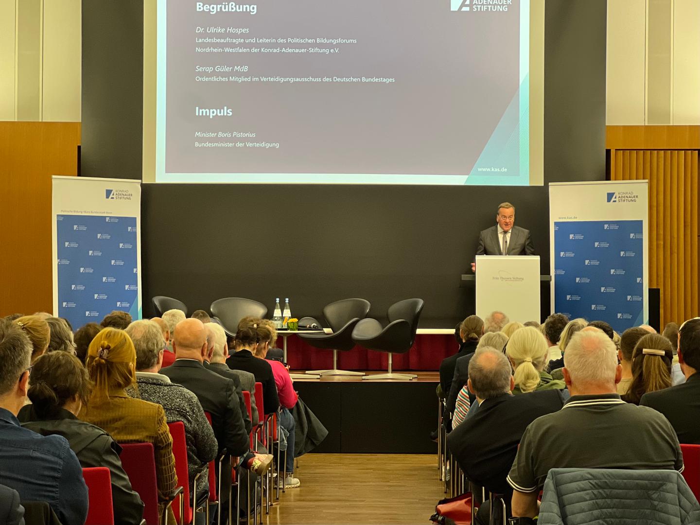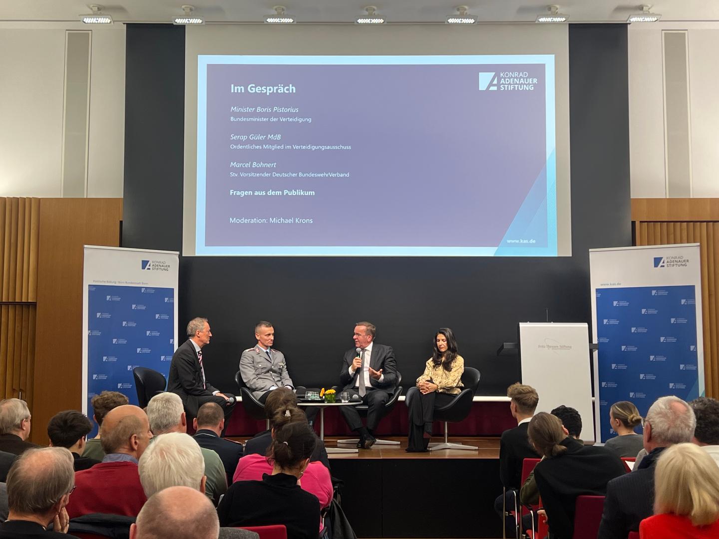 In seinem Impuls stellte Bundesverteidigungsminister Boris Pistorius fest: „Wir müssen uns als Land, als Gesellschaft, als Bündnis mit einer Bedrohungslage auseinandersetzen, die wir nicht für möglich gehalten haben.“ Pistorius forderte, die Debatte nicht nur politisch, sondern gesellschaftlich zu intensivieren, um nach 35 Jahren Friedensdividende eine ganze Generation lernen zu lassen, mit der neuen Situation umzugehen. Es stimme, die Bundesrepublik sei spät aufgewacht, die baltischen und skandinavischen Länder hätten den Weckruf 2014 gehört, während wir noch einmal die Snooze-Taste gedrückt hätten. „Wir haben zu lange an unsere Sicherheit geglaubt, anstatt in sie zu investieren“, so Pistorius. Putins Ziel sei es, 1,3 Millionen Menschen in Waffen zu haben. Er habe auf Kriegswirtschaft umgestellt. Unsere Antwort müsse Abschreckung durch kriegstüchtige, verteidigungsfähige Streitkräfte sein, um auf die imperialistischen Aussagen und Drohungen zu reagieren. Weitere Bedrohungslagen – im Nahen Osten, globale Machtverschiebungen, die Spannungen zwischen China und den USA – zwingen zum Handeln. Pistorius: „Eine Bedrohung, die man nicht wahrnimmt, verschwindet nicht, sie wird größer.“