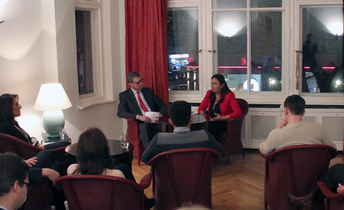 Der Kampfgeist und Optimismus, der notwendig ist, um die angesprochenen Herausforderungen tatkräftig anzugehen, waren der energisch und zugleich emphatisch auftretenden Düzen Tekkal den gesamten Abend über anzumerken. Und für den nächsten Morgen war direkt der nächste Einsatz geplant: ihre Teilnahme an der Münchener Sicherheitskonferenz, um dort weiter für die jesidische Sache zu werben.