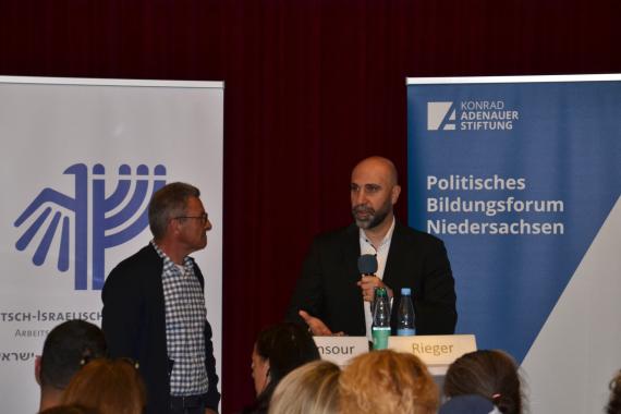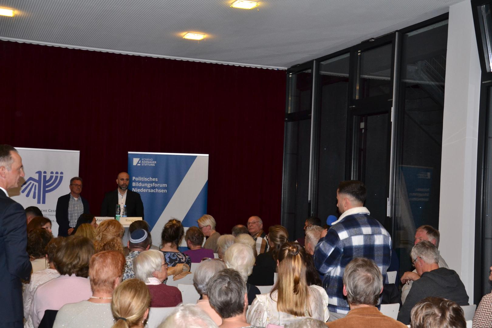 Daran anknüpfend stellte Herr Christoph Bors, Landesbeauftragter der Konrad-Adenauer-Stiftung für Niedersachsen, den besonderen Bezug zwischen der KAS und der Förderung jüdischen Lebens in Deutschland her. Für Adenauer, dessen politische Haltung und Weltbild zentraler Bestandteil des KAS Wertefundamentes ist, war die Verbindung und Verantwortung für jüdisches Leben und den jungen Staat Israel gegenüber eine Herzensangelegenheit, insbesondere aufgrund Deutschlands historischer Rolle.
