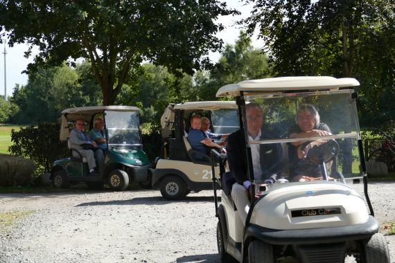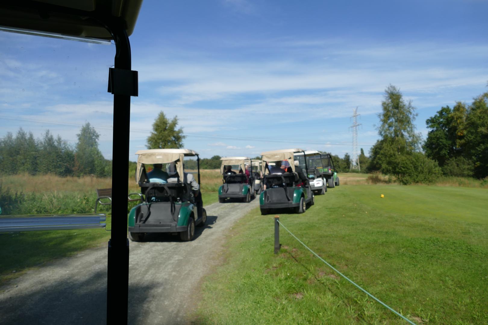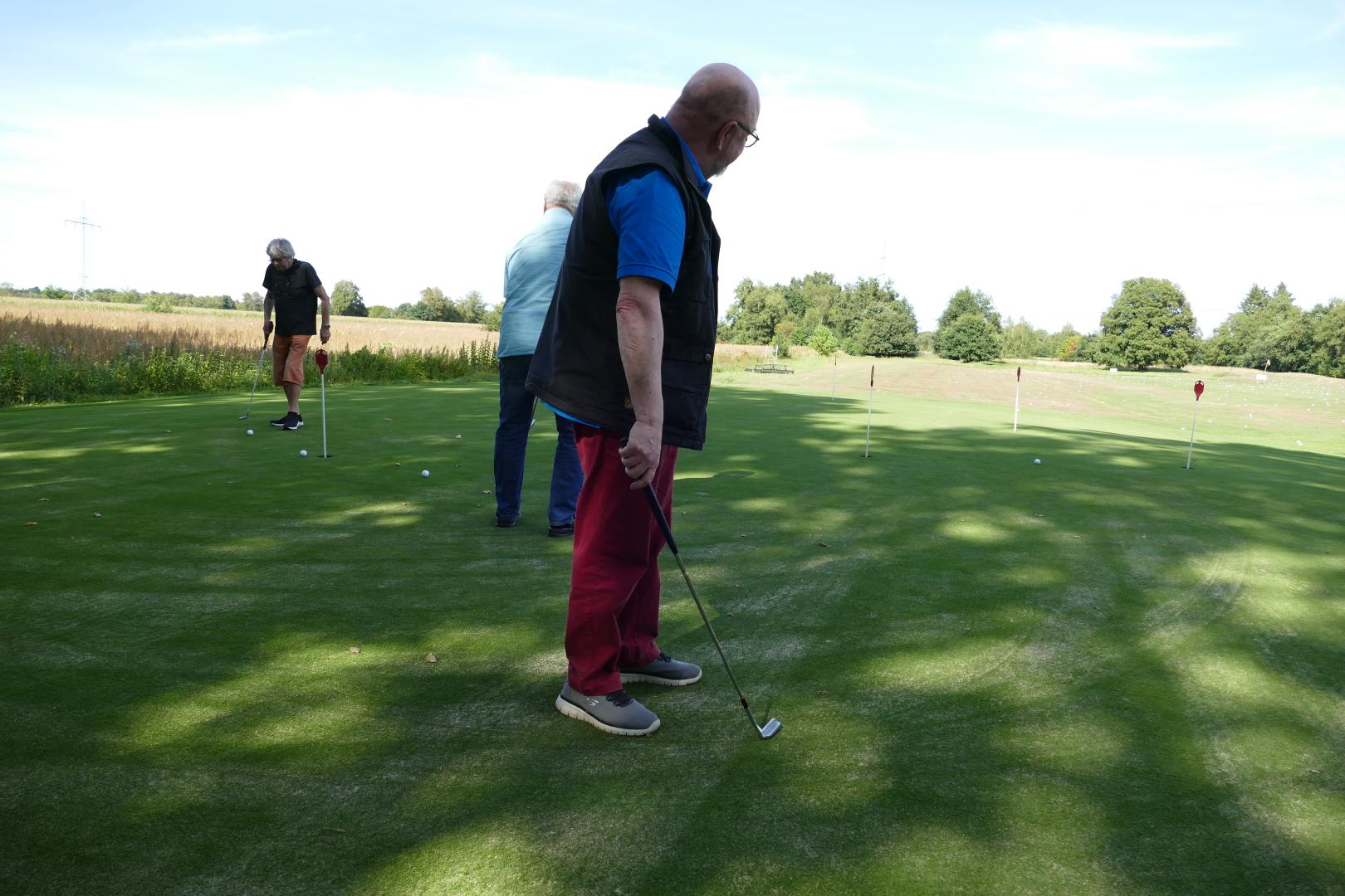 Schließlich galt es, noch den Golfplatz zu erkunden. Mit Golf-Carts konnten verschiedene Bahnen ohne Probleme erreicht werden. Treppen gibt es nicht, jeder Abschlag ist gut zu bedienen, was 2005 mit der Auszeichnung „Barrierefrei“ des Sozialverbandes Deutschland belohnt wurde. Auf dem Weg trafen die Teilnehmer auch auf das Team, das die „Rasenflächen“ (Greens und Fairways) bearbeitete, und machten Halt in der Werkstatt. Dort werden auch im Winter Instandhaltungsarbeiten vorgenommen. Außerdem konnte sich auf der Driving Range mit dem „Putten“ vertraut gemacht werden. Dabei rollt der Ball lediglich auf dem Rasen, anstatt eine Fluglinie zurückzulegen. Ziel ist es, den Ball mit möglichst wenigen Versuchen einzulochen und somit das Loch zu beenden.
