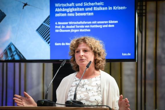 Nach einem Grußwort von Schirmherr Dr. Jörg Geerlings startete das Wirtschaftsforum inhaltlich mit einem ersten Impulsvortrag von Prof. Dr. Anabel Ternès von Hattburg. Sie unterstrich in ihrem Eröffnungsstatement, dass unsere Gesellschaft sich in einer von Krisen geprägten Zeit befindet, jedoch positive Impulse erkennbar sind. Ternès thematisierte die Herausforderungen für den Mittelstand aufgrund von Lieferkettenschwierigkeiten und die Sorgen energieintensiver Unternehmen bezüglich möglicher Energieengpässe. Diese Probleme betreffen laut der Gründerin mehr Menschen und Unternehmen als bisher angenommen. Weiterhin sprach Ternès über die zunehmenden Umweltauflagen und Gesetze wie die EU-Taxonomie, die Unternehmen vor Schwierigkeiten stellen, aber auch Chancen für die Entwicklung nachhaltiger Technologien bieten. Abschließend rief Ternès zu einem neuen Mindset auf und warnte vor einem Festhalten am "Industriezeitalterdenken". Es sei wichtig, sowohl die regionale Bedeutung zu betonen als auch den Blick auf globale Nachhaltigkeit zu richten.