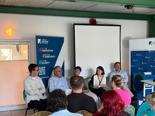 Zum Abschluss diskutierten die Gäste gemeinsam auf dem Podium, moderiert von Dr. Sarah Al Doyaili-Wangler, welche Lösungsansätze nötig sind, um das Leben im ländlichen Raum attraktiver zu gestalten.