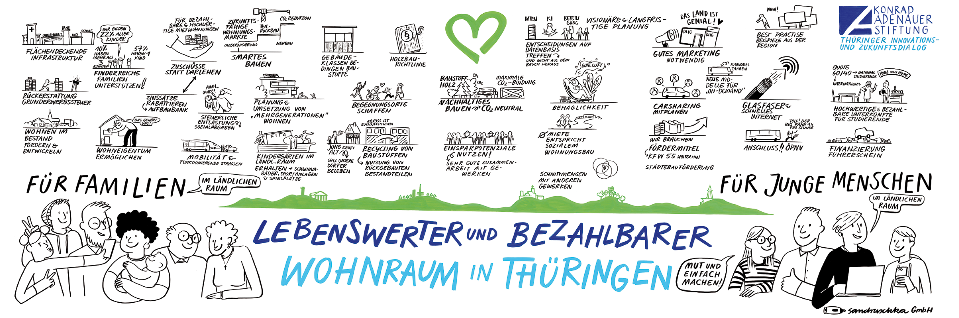 In einem Grafik Recordings wurden die Impulse von der Agentur Sandruschka, Weimar grafisch festgehalten und werden im Rahmen des bundesweiten Wohnkongresses der Konrad-Adenauer-Stiftung am 16. Oktober in Berlin weiterverarbeitet.