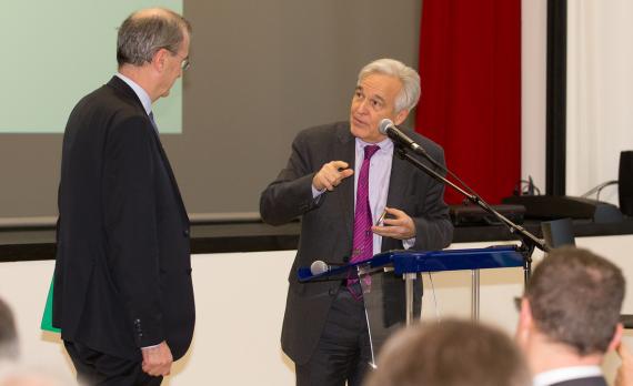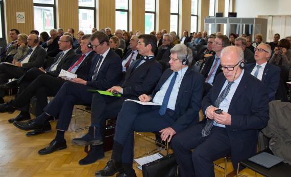 Gerade im ländlichen Raum scheint Europa oft weit weg. Annie France Mondelin, Bürgermeisterin der 1200-Seelen-Gemeinde Moulinet, kennt dieses Gefühl. Eine Förderung von Projekten in ihrer Gemeinde scheiterte bisher, da die „Projekte nicht groß genug“ oder „Themen nicht europäisch genug“ gewesen seien. Wie kann der europäische ländliche Raum besser unterstützt werden? Lucien Gonnot, Bürgermeister von Neuilly-le-Réal, nimmt die Kommunen selber in der Pflicht. Ein Großteil der EU-Verordnungen wird heute direkt in den Kommunen umgesetzt, daher müssen die Kommunen sich mit dem Thema Europa verstärkt auseinandersetzen und sich z.B. über Fördermöglichkeiten informieren oder den Austausch mit den Vertretern in Brüssel suchen. „Europa steckt in unseren Genen und wir werden Europa treu bleiben“, so Gonnot weiter. Francois Villeroy de Galhau, Governeur der französischen Notenbank, setzt auch in Zeiten von Euroskepsis und Brexit große Hoffnungen auf unsere gemeinsame Währung. 25 Jahre nach Unterzeichnung des Vertrags von Maastricht sei Europa ein Erfolgsmodell und der Euro das feste Fundament unserer Wirtschaft. Dieses Fundament, das wir gemeinsam geschaffen haben, dürfe man nicht zerstören. „Wir können stolz auf das sein, was wir mit dem Euro in den letzten Jahren erreicht haben“, so Villeroy de Galhau. Im Kampf gegen die zunehmende Verschuldung sieht er Protektionismus oder den Ausstieg aus dem Euro als den falschen Weg. Er fordert mehr Investitionen in Infrastruktur, Energiewende, Digitalisierung. „Wir brauchen eine kollektive Wirtschaftsstrategie in Europa“, so der Gouverneur der französischen Notenbank weiter.