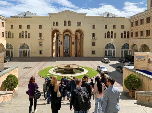 In welche Richtung bewegen sich unsere östlichen Nachbarn? Nicht erst seit der russischen Invasion in die Ukraine stellt sich diese Frage. Seither erscheint sie aber in einem neuen Licht. So auch in Georgien. Während einer Studienreise unter der Leitung von Prof. Dr. Beate Neuss in das Land beschäftigte sich das Promotionskolleg Sicherheit und Entwicklung daher explizit mit dem NATO-Nachbarn. Wie das Land um seine Richtung kämpft, wurde nicht nur im Stadtbild, sondern vor allem durch zahlreiche Gespräche vor Ort sichtbar.