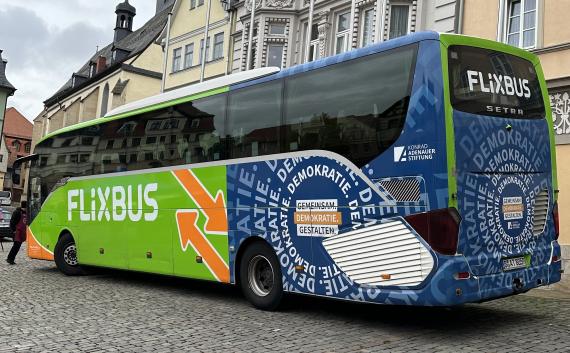 Im April organisierte die Konrad-Adenauer-Stiftung (KAS) zwei Schulveranstaltungen inklusive einer KAS-Ausstellung „DDR: Mythos und Wirklichkeit“, mit der DDR-Zeitzeugin Elke Schlegel. In der Ausstellung werden Mythen über das Leben unter der SED-Diktatur aufgegriffen und Informationen über vor allem Alltag, Kultur, Wirtschaft, Umwelt, Schule und Ideologie in der DDR vermittelt.