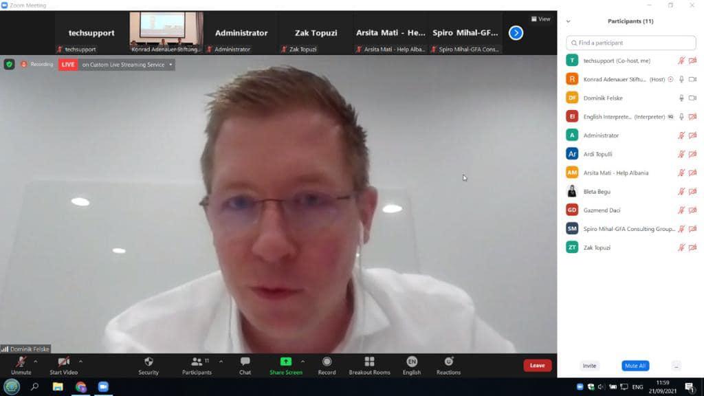 Die Konrad-Adenauer-Stiftung organisierte am 21. September in Zusammenarbeit mit den „Freunden aus Korça“ und AREA einen runden Tisch bezüglich der Förderung von Maßnahmen zur Nutzung erneuerbarer Energien für einen nachhaltigen Tourismus. Geladen waren wichtige mitwirkende Entwicklungsakteure, darunter der stellvertretende Minister für Infrastruktur und Energie Herr Gjergj Simaku, die Leiterin der europäischen Bank für Rekonstruktion und Entwicklung in Albanien Frau Ekaterina Solovova und der GIZ Berater im albanischen Ministerium für Infrastruktur Herr Julien Jomaux. Eröffnet wurde die Veranstaltung mit einer Rede von Dr. Tobias Rüttershoff Leiter des KAS-Büros in Albanien, welcher alle Teilnehmenden willkommen hieß und das Thema der Veranstaltung einführte. Es folgten daraufhin mehrere Präsentationen, allesamt mit dem Ziel innovative Projekte und Lösungsvorschläge zu bestimmten Herausforderungen vorzulegen. Vor allem betont wurde die Wichtigkeit des Ausbaus erneuerbarer Energien auch für die Entwicklung der Gesamtwirtschaft und des Tourismus. Anschließend gab es eine offene Diskussionsrunde der Teilnehmenden, in welcher sowohl Anregungen offengelegt werden konnten als auch Fragen geklärt wurden. Die Veranstaltung war ein Erfolg, allerdings wurde im Laufe der Veranstaltung deutlich, dass auch weiterhin Gesprächsbedarf zwischen den Akteuren besteht. Daher wird es in der Zukunft noch weitere dieser Veranstaltungen geben, um einen stetigen Austausch zu sichern.