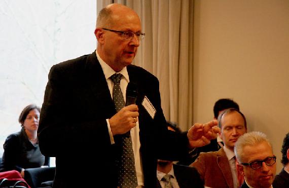 Beim Thema europäische Finanz- und Staatsschuldenkrise ging es vor allem um die Entscheidungen zum sogenannten Neuner-Gremium sowie zum ESM und Fiskalpakt. Der Fokus auf das Parlament, den das Bundesverfassungsgericht bei Entscheidungen zur Bewältigung der Krise einfordere, sei in einer parlamentarischen Demokratie dem Grunde nach geboten, sagte Hanno Kube, Professor an der Johannes-Guttenberg-Universität Mainz. „Aber es muss doch gefragt werden, ob hier nicht die Gefahr einer Überforderung des Parlaments entsteht", zumal wenn man sich die überstaatliche Einbindung politischer Entscheidungsstrukturen anschaue. Es stelle sich die Frage, wie es mit der parlamentarischen Verantwortung und Beteiligung weitergehe, sagte der Staatsrechtler und ehemalige Bundesminister Professor Rupert Scholz aus dem Publikum. „Da habe ich schon meine Sorgen, denn ich glaube letztlich, es entwickelt sich eine Überexekutivierung sowohl supranationaler, als auch nationaler Art. Dem ist gar nicht auszuweichen.“ Ähnlich äußerte sich der Bundestagsabgeordnete Professor Patrick Sensburg: „Was mir schlaflose Nächte bereitet, ist: Wie gehen wir damit in Zukunft um, mit einer immer dynamischer werdenden Europäischen Union, die exekutive Entscheidungsprozesse einfordert?“ Sehr vorsichtig müsse man sein im Hinblick auf weitere Haftungsrisiken, die übernommen werden, sagte Professor Lars Feld, Leiter des Walter-Eucken-Instituts in Freiburg und einer der fünf Wirtschaftsweisen. Im Grunde solle auf europäischer Ebene ein Restrukturierungsregime entstehen, ein Abwicklungsregime für Banken. „Dafür muss es auch Liquiditätsmechanismen geben“, sagte Feld. „Die können aus deutscher Sicht nur begrenzt sein, die dürfen nicht unbegrenzte Haftungsansprüche begründen.“