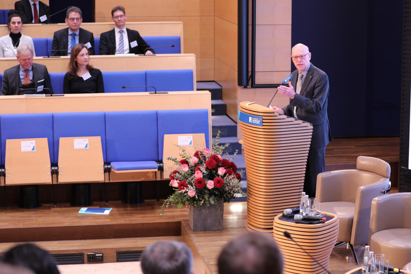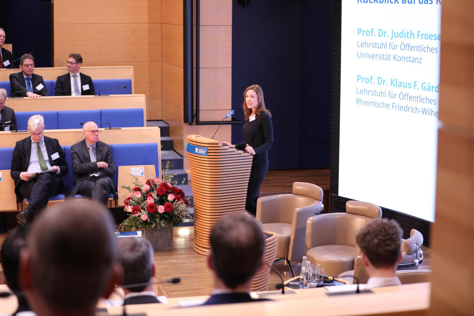 In seiner Begrüßung richtete der Vorsitzende der Konrad-Adenauer-Stiftung, Prof. Dr. Norbert Lammert, seinen besonderen Dank an Prof. Dr. Judith Froese (Universität Konstanz) und Prof. Dr. Klaus Gärditz (Universität Bonn) für deren wissenschaftliche Begleitung der Veranstaltung sowie ihren auf die Begrüßung folgenden Überblick aus der Fülle von Einzelentscheidungen, die eine besondere Aufmerksamkeit verdienten. Mit Blick auf die Podien wies der Vorsitzende daraufhin, dass sich in allen drei Fällen der exemplarisch ausgewählten und zu diskutierenden Entscheidungen schwerlich sagen ließe, dass die getroffene Entscheidung des Bundesverfassungsgerichts so ganz sicher oder auf gar keinen Fall zu erwarten gewesen sei. „Eher gibt es für alle drei Beispiele starke Indizien dafür, dass es jedenfalls eher auf diese als auf eine andere Entscheidung hinauslaufen könnte“, so Lammert. Dies bestätigten auch die drei darauffolgenden Podiumsdiskussionen.