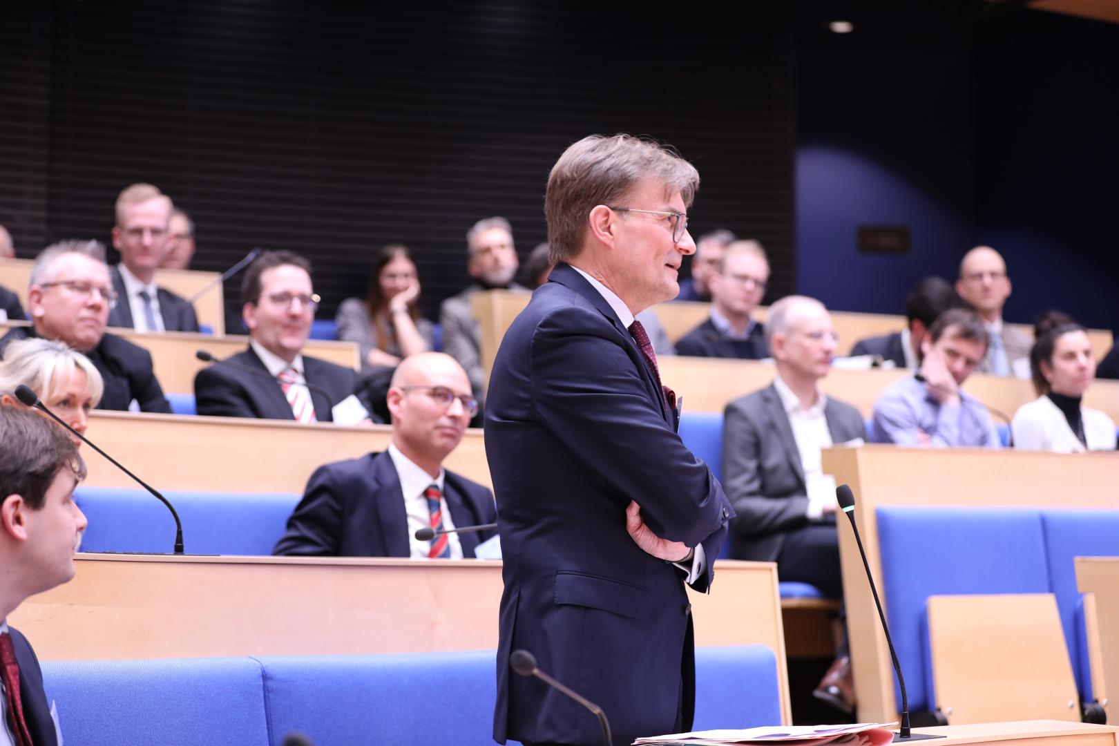 Den Auftakt bildete das von Dr. Christian Rath moderierte Podium zur Entscheidung des Zweiten Senats über das spektakuläre Haushaltsmanöver der Ampelregierung vom 15. November 2023. Dieses sei das wichtigste Urteil des Jahres, da es nicht nur das erste Urteil zur Schuldenbremse sei, sondern auch zu einer massiven Regierungskrise geführt habe, betonte der rechtspolitische Journalist in seiner Einführung. Jedenfalls über die herausragende Bedeutung des Urteils aus verfassungsrechtlicher, politischer und ökonomischer Perspektive waren sich die drei Diskussionspartner einig. „Dass die neue Schuldenbremse greift und justiziabel ist, ist das überragend wichtige Signal, das von diesem Urteil ausgeht“, betonte Prof. Dr. Hanno Kube, LL.M. (Cornell) (Universität Heidelberg). Darüber hinaus bringe das Urteil neue Gewissheit und Klarheit im Finanzverfassungsrecht und das sei ein großes und bleibendes Verdienst laut dem Finanz- und Steuerrechtsexperte. Der Vorsitzende des Verfassungsrechtsausschusses der Bundesrechtsanwaltskammer Prof. Dr. Christofer Lenz identifizierte neben der Schuldenbremse selbst, den Landesverfassungsgerichten, den haushaltsrechtlichen Grundsätzen, dem Prinzip der Nichtigkeit und der parlamentarischen Opposition insbesondere das Bundesverfassungsgericht und die Bürgerinnen und Bürger als Gewinner dieser Entscheidung. Gleichzeitig stelle sich für den Rechtsanwalt die Frage, ob eine Überprüfung der Schuldenbremse in einem Organstreitverfahren in Zukunft noch möglich sei, sollte die „große“ politische Opposition einmal in einen Konsens gebunden sein. Den Blick in die Zukunft wagte auch der stellv. Vorsitzende der CDU/CSU-Bundestagsfraktion für Haushalt, Finanzen und Kommunalpolitik, Dr. Mathias Middelberg MdB, der die Folgen des Urteils aus politischer Perspektive beleuchtete. Diese würden zeigen „wie sehr die Verschuldung aus der Vergangenheit, das Handeln in der Zukunft einschränkt“ und verwies auf die Verantwortung, die gegenüber künftigen Generationen nicht nur im Hinblick auf die Klimapolitik, sondern auch mit Blick auf politische, volkswirtschaftliche und finanzwirtschaftliche Folgen bestehe.