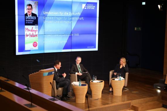 Zuvor hatte Hermann Gröhe, stellvertretender Vorsitzender der Konrad-Adenauer-Stiftung und stellvertretender Vorsitzender der CDU/CSU-Fraktion im Deutschen Bundestag, die lösungsorientierten Ansätze der beiden Diskutanten und Buchautoren gelobt. „In wichtigen Fragen der Klima- und Energiepolitik legen sie nicht nur den Finger in die Wunde, sondern stoßen wichtige Debatten an“, so Gröhe. Dies werde in den beiden Büchern, aber auch in der Diskussion deutlich.