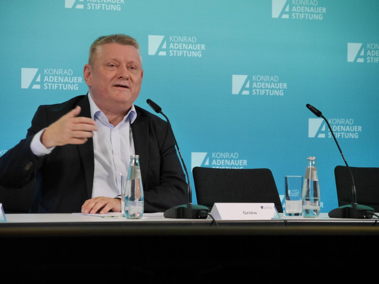 Herrmann Gröhe MdB skizzierte zunächst die grundlegenden Ziele von RED III und unterstrich ihre Bedeutung für den European Green Deal. Dieser sieht vor, dass die EU bis 2050 klimaneutral sein soll und bis 2030 ihre Netto-Treibhausgasemissionen um mindestens 55 Prozent senken soll. Jetzt sei wichtig, dass Innovation und Machbarkeit miteinander verbunden werden.