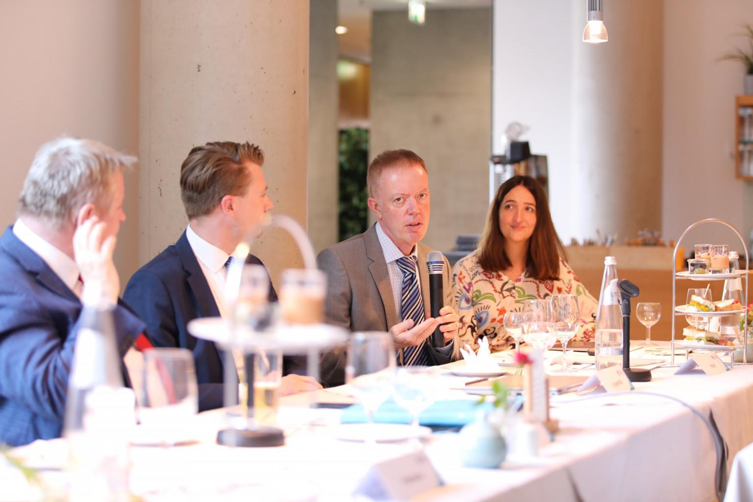 Fünf Programme sind hierbei besonders erwähnenswert: Die European and Developing Countries Clinical Trials Partnerships (EDCTP), die Product Development Partnerships (PDP), die Coalition for Epidemic Preparedness Innovations (CEPI), die German Alliance for Global Health Research (GLOHRA), sowie das Research Network for Health Innovations in Sub-Saharan Africa (RHISSA). Auf letzteres ging Dr. Klein genauer ein und betonte dabei den Ansatz, dass Forschungsprojekte durch die afrikanischen Partner definiert würden, wodurch ein höheres Maß an Ownership und damit Identifikation sowie ein Gefühl der Eigenverantwortung entstehe.