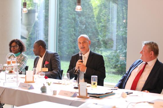 Die anschließende Diskussion drehte sich zunächst um die Auswahl der Länder und Projekte, die durch das BMBF gefördert werden. Dabei wurde deutlich, dass es für eine Partnerschaft auf Augenhöhe auch eine entsprechende Ownership auf Seiten der afrikanischen Länder und Partner braucht. Nur, was von den lokalen Partnern als Priorität identifiziert werde, könne letztlich auch sinnvoll und ohne einengende Vorgaben gefördert werden.
