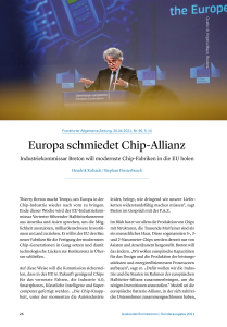Auf diese Weise will die Kommission sicherstellen, dass in der EU in Zukunft genügend Chips für das vernetzte Fahren, die Industrie 4.0, Smartphones, Künstliche Intelligenz und Supercomputer gefertigt werden. „Die Chip-Knappheit, unter der momentan die Autoindustrie leidet, belegt, wie dringend wir unsere Lieferketten widerstandsfähig machen müssen“, sagt Breton im Gespräch mit der F.A.Z.