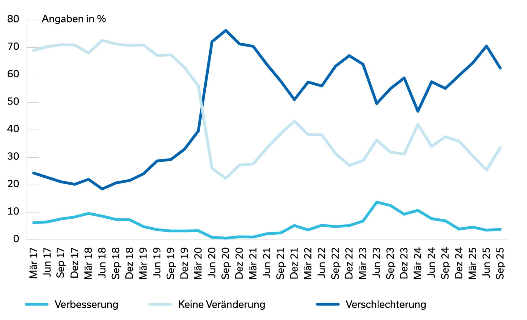 Abb. 1: Subjektive Einschätzung der gesamtwirtschaftlichen Lage, jeweils im Vergleich zum Vorjahr