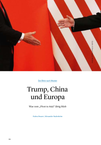 Die deutsche China-Politik ist seit Langem geprägt von den engen wirtschaftlichen Verflechtungen beider Länder. Während China bereits vor zwei Jahren Deutschlands wichtigster Handelspartner wurde, ist die Bundesrepublik der mit Abstand größte wirtschaftliche Partner Chinas in Europa. Seit dem Amtsantritt Donald Trumps sieht sich die Bundesregierung jedoch in einer bisher ungekannten Lage in ihrer Politik gegenüber China.