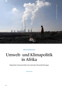 Bei der Implementierung von Klimaschutz- und Umweltmaßnahmen bildet die Region Subsahara-Afrika das Schlusslicht, obschon sich afrikanische Länder auf internationaler Bühne mit geeinter Kraft für die Umsetzung des Pariser Klimaabkommens einsetzen. Die Nationalstaaten in Afrika müssen daher in ihrem effektiven und effizienten umweltpolitischen Handeln gestärkt werden. Hierzu sind finanzielle Ressourcen und technisches Know-how notwendig, aber nicht zwingend ausschlaggebend, denn diese Instrumente können Probleme bei der Implementierung von Umweltgesetzgebung nur zum Teil beheben: Gute Regierungsführung, allen voran die Eindämmung von Korruption, und eine zielgerichtete Kommunikation über die Sinnhaftigkeit von Umweltpolitik sind notwendig, damit Umwelt- und Klimapolitik zielführend sind. In Südafrika beispielsweise haben Klima- und Umweltschutz an politischer Bedeutung gewonnen, im Vergleich zu anderen Entwicklungs- und Schwellenländern gibt es für die Zivilgesellschaft zahlreiche Möglichkeiten, an Konsultationsprozessen mitzuwirken. Südafrika ist bei seiner Energieerzeugung stark von Kohle abhängig, daher wird der Übergang zu erneuerbaren Energien und der damit einhergehende Verlust einer für das Land wichtigen Industrie nur möglich beziehungsweise handhabbar sein, wenn es eine breite gesellschaftliche Unterstützung für die Transformation gibt.