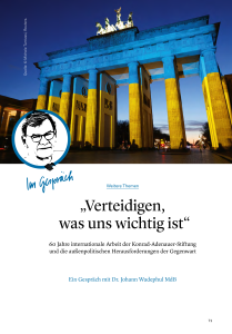 Wadephul: In der Tat: Die Ergebnisse dieser Art von Stiftungsarbeit sind häufig erst längerfristig erkennbar, aber es gibt doch eine ganze Reihe von Erfolgsprojekten. Ich komme noch einmal auf die Region zurück, über die wir zu Beginn des Gesprächs geredet haben. Die Heranführung der Staaten des Westbalkans an die Europäische Union zu fördern, auch den entsprechenden Geist in den Gesellschaften und das Verständnis dafür zu erhalten, was die Europäische Union für uns ausmacht – dafür engagiert sich die Konrad-Adenauer-Stiftung seit vielen Jahren mit Erfolg. Und Ähnliches kann ich für andere Weltregionen sagen. Wenn es beispielsweise darum geht, den Dialog mit unseren parteipolitischen Partnern in Lateinamerika aufrecht zu erhalten, wo die Auslandsarbeit der Stiftung in den 1960er-Jahren begann, oder wenn es darum geht, sicherheitspolitische Dialoge mit Partnern aus dem asiatischen Raum zu organisieren: All diese Kontakte und Gesprächsformate gäbe es ohne die Adenauer-Stiftung nicht. Und bei all diesen Treffen werden politische Entwicklungen angestoßen und gefördert.