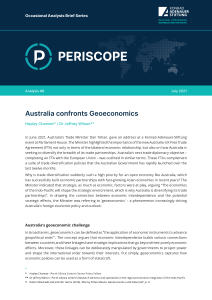 Periscope’ ist eine Publikationsreihe der KAS Australien mit kurzen bzw. längeren Analysen. Ähnlich wie das eigentliche Sichtinstrument soll ‚Periscope’ unsere Kenntnisse unter Berücksichtigung verschiedener Blickwinkel erweitern. Die deutsche, europäische, australische und pazifische Perspektive soll berücksichtigt werden, um unser Verständnis von aktuellen Herausforderungen im Bereich der Außen- und Sicherheitspolitik, Rechtsstaatlichkeit und Energiepolitik sowie in Bezug auf wirtschafts-, sozial- und entwicklungspolitische Fragen zu erweitern.