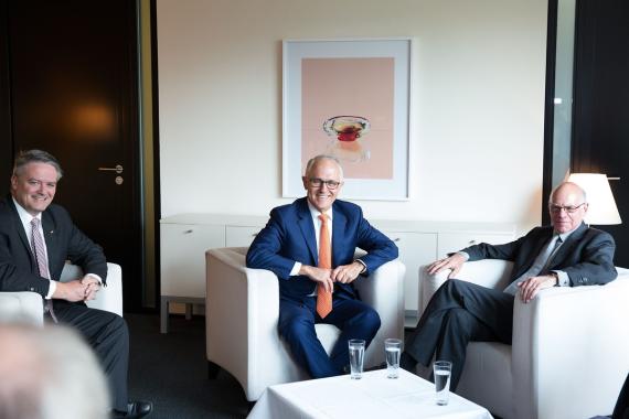 Turnbull erinnerte an ein Treffen des Bundeskanzlers Konrad Adenauer und dem australischen Ministerpräsidenten Robert Menzies 1956, in dem beide sich in ihrer kritischen Haltung gegenüber der Sowjetunion bestätigten. Beide hätten für die Werte der Freiheit, des Unternehmungsgeistes und der Würde des einzelnen gestanden und gekämpft. Auch heute würden beide Länder auf dieser Grundlage eng zusammenstehen (…).