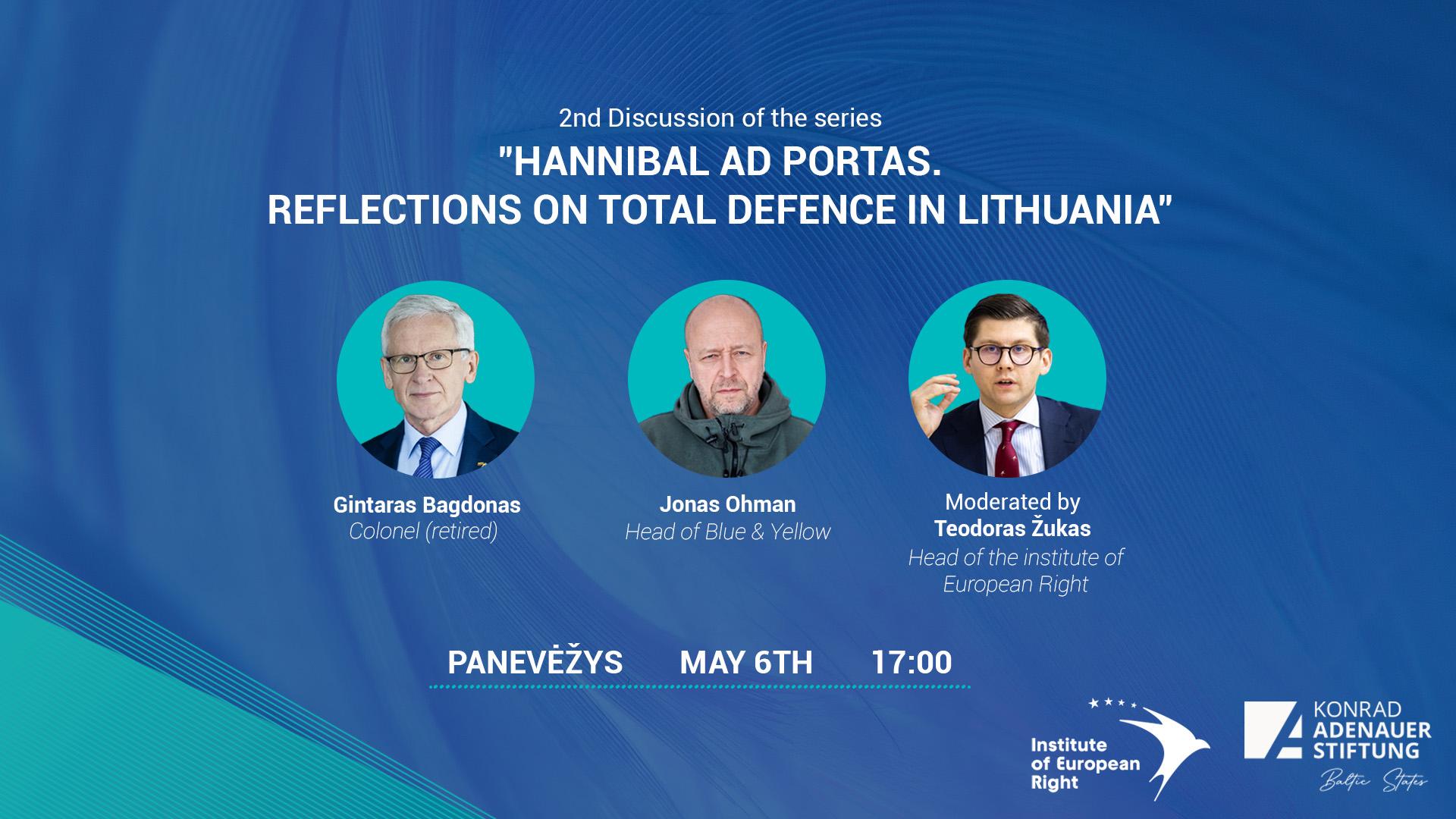 "Hannibal ad portas. Reflections on Total Defence in Lithuania" is a series of discussions across Lithuania to discuss the current security situation in Lithuania and the region and to discuss the necessary measures to strengthen total defence in Lithuania.