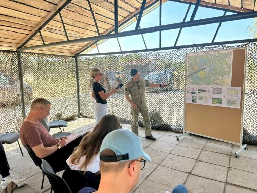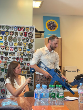 This also shows in the support NGOs receive in the country, such as the Blue/Yellow organization. Here the journalists could ask questions to volunteers who have been in Ukraine and helped either with medical assistance, or by collection equipment for Ukrainian soldiers. Something that left a lasting impression on our group was meeting Arūnas Kumpis, a volunteer fighting in Ukraine. His stories and experiences from the frontline were very valuable for the journalists, giving them context as to why Ukraine cannot afford to give up territory and the brutal rule Russia is imposing on occupied regions.