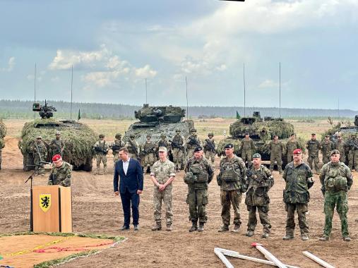 Of course, the biggest topic in Lithuanian security policy at the moment is deterrence and resiliency and the most important part of this is the German brigade, which is set to be fully stationed in Lithuania in 2027. The journalists got the opportunity to visit the future military training base where German soldiers will be stationed and witnessed the fast progress, that the necessary infrastructure projects have made. Our visitors also got to see the final maneuver of the NATO exercise Grand Quadriga 2024 in Pabrade. Here, the German Army showed an impressive example of combined arms operations and Major General Breuer reiterated the importance of deterrence. He also added, standing in front of
