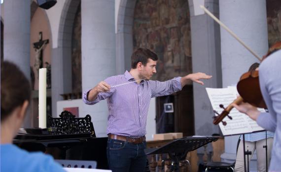 Seit 2024 wird das Orchester von Georg Razumovskij geleitet. Nach seinem Abitur blieb er in Köln und studierte an der Hochschule für Musik und Tanz Instrumentalpädagogik mit den Hauptfächern Klavier und Saxophon. Georg schloss im Jahre 2024 erfolgreich sein Dirigierstudium an der Hochschule für Musik und Tanz in Köln ab und ist seitdem Altstipendiat der KAS. Es freut uns besonders, mit Georg einen hochmotivierten und professionellen Dirigenten gewonnen zu haben, der das Orchester über mehrere Jahre hinweg begleitet.