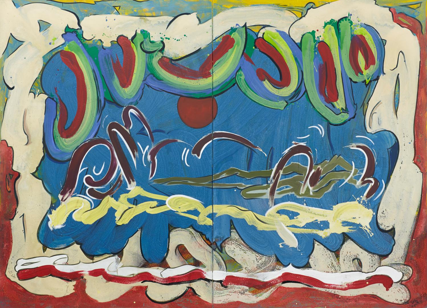 Die Bilder bei Cella sind anders als meine älteren Bilder und wenn du dir die Bilder hier im Atelier anschaust, geht es noch weiter in eine andere Richtung. Eine Bildstrategie, wie du sie gerade andeutest, also dass man in Schichten malt oder etwas verbirgt, habe ich nicht – das sind Prozesse, die automatisch ablaufen. Ich stehe da, fange ein Bild an, will es irgendwo hin treiben und es gelingt mir nicht. Dann driftet es weg, woanders hin.