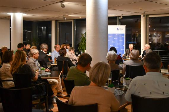 Zu einer Lesung aus „Stern 111“ (2020) war Lutz Seiler auf Einladung der Konrad-Adenauer-Stiftung ins Leipziger Literaturhaus gekommen. Dessen Leiter Thorsten Ahrend begrüßte fast 100 Gäste im Literaturcafé und freute sich über die Zusammenarbeit mit dem Landesforum Sachsen der Stiftung. Dem Autor war die Freude sichtlich anzumerken. Kein Wunder, ist er doch aktueller Literaturpreisträger der Stiftung, designierter Büchnerpreis- und Berliner Literaturpreisträger – und Leipzig auf vielfache Weise verbunden. In der Buchstadt hatte er seine „ersten richtigen Lesungen“; hier hatte er, auf Rohren zwischen den Messehallen sitzend und rauchend, mit dem damaligen Suhrkamp-Lektor Ahrend im Frühjahr 1999 per Handschlag den Vertrag zu seinem zweiten Lyrikband „pech & blende“ (2000) besiegelt. Und hier war er, nach eigenen Worten, auf der „Mütteretage“ des Studentenwohnheims zum Zeugen des Mauerfalls geworden.