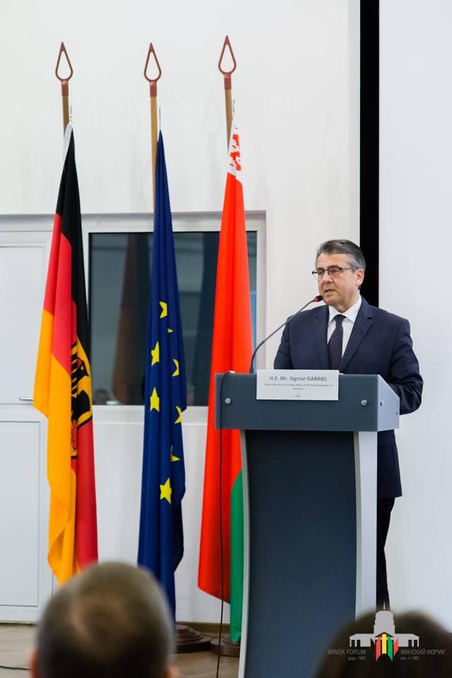 Zum ersten Mal in der Geschichte traten der deutsche Außenminister Sigmar Gabriel und sein Amtskollege, der belarussische Außenminister Uladsimir Makei, zusammen als Redner auf dem Forum auf. Die Außenminister trugen über die Entwicklung der Beziehungen zwischen Belarus, Deutschland und der Europäischen Union vor. Uladsimir Makei betonte, dass Deutschland einer der Schlüsselpartner der Republik Belarus im Westen sei und unterstrich die Notwendigkeit der pragmatischen Kooperation sowohl zwischen den beiden Ländern als auch zwischen Belarus und der EU. Bundesminister Gabriel sprach sich für die Verstetigung des Dialogs zwischen Deutschland und Belarus und seine stärkere Füllung mit den Inhalten aus.