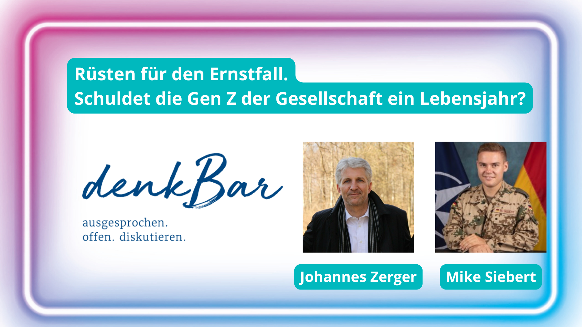 Sie sind herzlich eingeladen, dabei zu sein und gemeinsam mit unseren Gästen Johannes Zerger und Hauptmann Mike Siebert und miteinander ins Gespräch zu kommen.