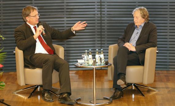 Nach der Lesung führte Andreas Kleine-Kraneburg ein Gespräch mit Michael Kogon zur Entstehung des Buches und dessen Erinnerungen. Die Unterhaltung geben wir hier in aller Kürze wieder: