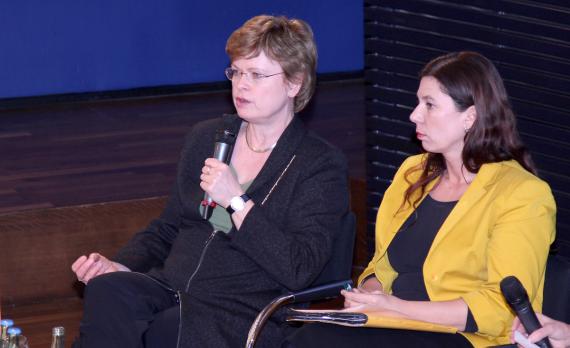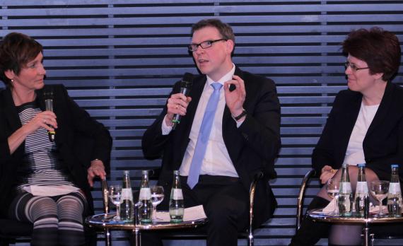 Sandra Scheeres MdA, Senatorin Senatsverwaltung für Bildung, Jugend und Wissenschaft, sah in den Hamburger und Münchner Lösungen kein Allheilmittel: „Die Konzepte sind überlegungswert, aber nicht eins zu eins übertragbar“, denn in Berlin seien jetzt durch die rapide gestiegenen Schülerzahlen schnelle Lösungen nötig: Seit 2012 gäbe es knapp 45.000 Schüler mehr jedes Jahr. Das Planen dürfe nicht länger dauern als der Bau selbst. Neben Neubauten seien deswegen auch Ergänzungsbauten notwendig. Zudem müssten die Verfahren geändert werden. Deswegen plädierte Scheeres für kurzfristige Pilotprojekte: „Wir müssen jetzt schon loslegen.“