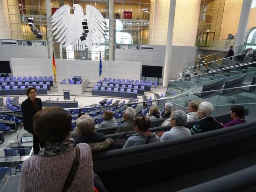 Der letzte Seminartag bot der Gruppe eine Führung mit Vortrag im Deutschen Bundestag, vor dem obligatorisch abschließend ein Gruppenfoto aufgenommen wurde.