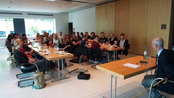 Gleich zu Beginn sprachen die Teilnehmer des Seminars mit dem ehemaligen Abteilungsleiter des RBB, Bereich Kulturradio/Politik, Thomas Habicht. Dieser gab einen ersten Einblick in das politische Berlin und erläuterte die journalistische Arbeit mit Politikern.