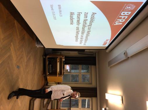 „Wo Retter lernen können!“ war das Thema des dritten Seminartags. Die angehenden Notfallsanitäter besuchten die Berliner Feuerwehr- und Rettungsdienst-Akademie (BFRA) in Berlin-Reinickendorf. Während eines 3-stündigen Aufenthaltes konnten die Auszubildenden den Schul- und Simulationsbetrieb kennenlernen und den Leiter des Rettungsdienstes Herrn Dr. Baumann ausführlich zu allen Gebieten befragen.