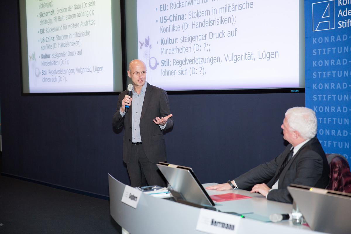 Die Wahl Donald Trumps birgt nach Überzeugung des Referenten speziell für das transatlantische Verhältnis einige Risiken. So würde seiner Ansicht nach ein US-Protektionismus speziell den Exportweltmeister Deutschland schwer treffen. Die Einstellung Donald Trumps gegenüber Freihandelsabkommen, habe sich durch dessen Entscheidung PPT auszusetzen und NAFTA neu zu verhandeln gezeigt, so Segbers. Vor diesem Hintergrund geht er davon aus, dass das Freihandelsabkommen TTIP gestorben ist. Für den Fall, dass Trump die Nato tatsächlich für obsolet halte und der Schutzschirm der USA für Europa entfalle, drohten gewaltige Anstrengungen auf Europa zuzukommen, wenn es sich selbst verteidigen müsste. Das Verhältnis der USA zu China bewertete er als kritisch und betonte, dass er durchaus die Gefahr sehe, dass die beiden Länder in einen militärischen Konflikt hineinstolpern könnten.