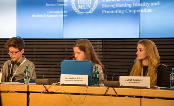 Das Thema der diesjährigen Konferenz war das „Streben nach Stabilität in einer instabilen Welt“, welches insbesondere vor dem Hintergrund der aktuellen, weltpolitischen Lage brennender denn je erscheint. Es sei wichtig, in Zeiten aufflammenden Rechtspopulismus und wiederkehrenden nationalstaatlichen Denkens, sich auf die Grundfesten freiheitlicher und demokratischer Grundwerte zurückzubesinnen, so BERMUN-Generalsekretärin Juliett Reichert in ihrer Grundsatzrede an die Delegierten. Gleichzeitig brauche es aber eine bewusste Form der Identitätspolitik, also politische Positionen, die auf den Interessen und Perspektiven bestimmter sozialer Gruppen basieren, mit denen sich die Menschen identifizieren, stellte sie weiter fest. Dies sei notwendig, um Ungerechtigkeiten oder auch Benachteiligungen jener Gruppen innerhalb von Gesellschaften rechtzeitig zu adressieren: Identitätspolitik nicht verstanden als „Wir gegen euch“, sondern im Sinne der gesellschaftlichen Inklusion. Nur so könnten nachhaltige und stabile Politikinhalte generiert werden, die niemanden außen vor ließen, resümierte Reichert. Die erst 16-jährige Generalsekretärin forderte dementsprechend die Delegierten auf, in ihren Verhandlungen, die Balance zwischen Identitätssinn und Kooperationswillen nicht aus den Augen zu verlieren. Andreas Kleine-Kraneburg, Leiter der Akademie der Konrad-Adenauer-Stiftung, unterstrich schließlich in seinem Grußwort die Wichtigkeit des BERMUN-Leitthemas, das perfekt zu dem Grundstreben der Stiftung passe, Demokratie und freiheitliches Denken weltweit zu fördern.