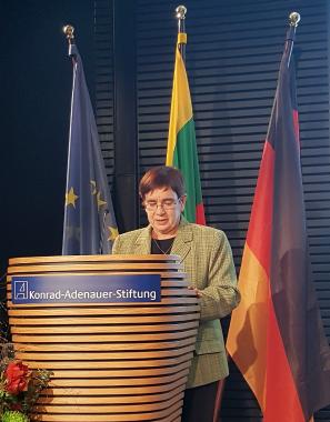 In der anschließenden Diskussion antwortet Botschafter Matulionis auf die Frage nach den Folgen des unerwarteten Wahlausganges: „Ich kann versichern, dass es bei uns keine großen Schwankungen in der Außenpolitik geben wird, denn fast alle Parteien haben vor einigen Jahren die Deklaration der litauischen Außenpolitik unterschrieben. In der Außenpolitik sind die Unterschiede zwischen den Parteien geringer als in Deutschland.“
