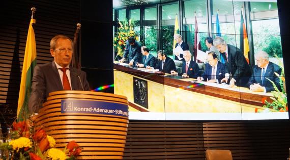 Litauens Verhältnis zu Deutschland, genauer gesagt, zu Ostpreußen, habe durchaus identitätsstiftende Wirkung gehabt: In Königsberg wurde die Bibel erstmals ins Litauische übersetzt, die erste Grammatik der litauischen Sprache verfasst und der erste litauische Gedichtband gedruckt, Ende des 19. Jahrhunderts wegen des zaristischen Presseverbotes auch die ersten litauischen Volkszeitungen. Ostpreußen gilt deshalb als Wiege der litauischen Literalität. Diese Erfahrung war eine wichtige Grundlage für die Aufnahme und den Ausbau der deutsch-litauischen Beziehungen nach der Wiedererlangung der Unabhängigkeit. Positiv bewertete der Botschafter die Weigerung der Bundesrepublik Deutschland, die Okkupation der baltischen Staaten durch die Sowjetunion anzuerkennen. Ferner unterstützte Deutschland Litauens Wunsch nach schnellstmöglichem Beitritt zu EU und NATO. Zu Recht, denn nach gut 25 Jahren gilt Litauen heute als Musterbeispiel für die gelungene Transformation von einem kommunistischen in ein demokratisches Land mit Rechtsstaatlichkeit, Einhaltung der Menschenrechte, Meinungsfreiheit und Marktwirtschaft.