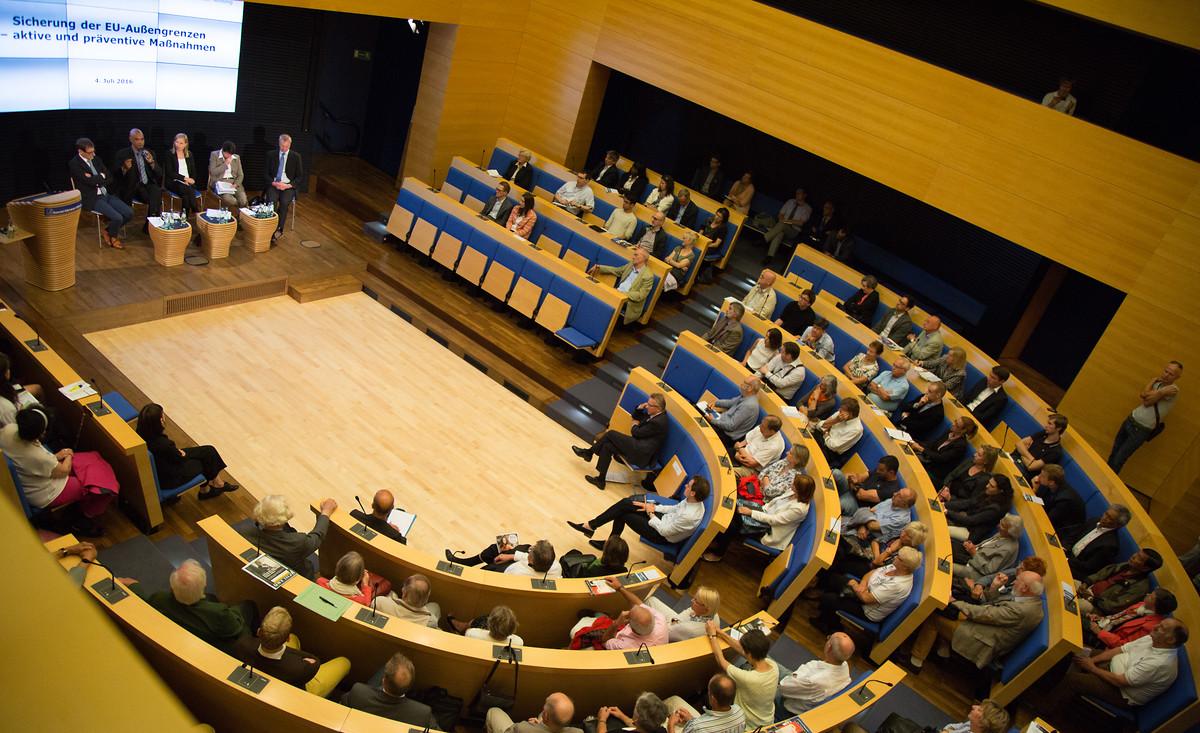 „Es ist wichtig, dass die Außengrenzen nicht nur national gesehen werden, sondern in der Verantwortung aller EU-Staaten liegt“, sagte Prof. Dr. Christian Calliess, Rechtsberater des Planungsstabs Europäisches Politisches Strategiezentrum des Präsidenten der EU-Kommission bei der Diskussionsrunde zur Thematik in der Akademie der Konrad-Adenauer-Stiftung.