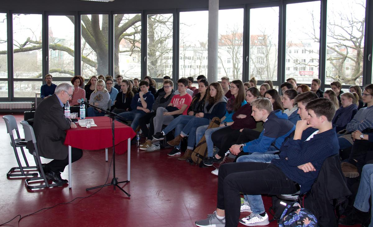 „Tagesanbruch“, so lautet der Titel des neuesten Buches Hans-Ulrich Treichels, aus dem der Autor am späten Vormittag des 10. März 2017 vor Schülern/innen des Gymnasiums Steglitz vorgelesen hat.